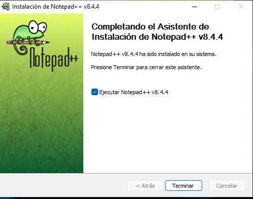 cuadro Ejecutar Notepad ++, en su caso clic en terminar: